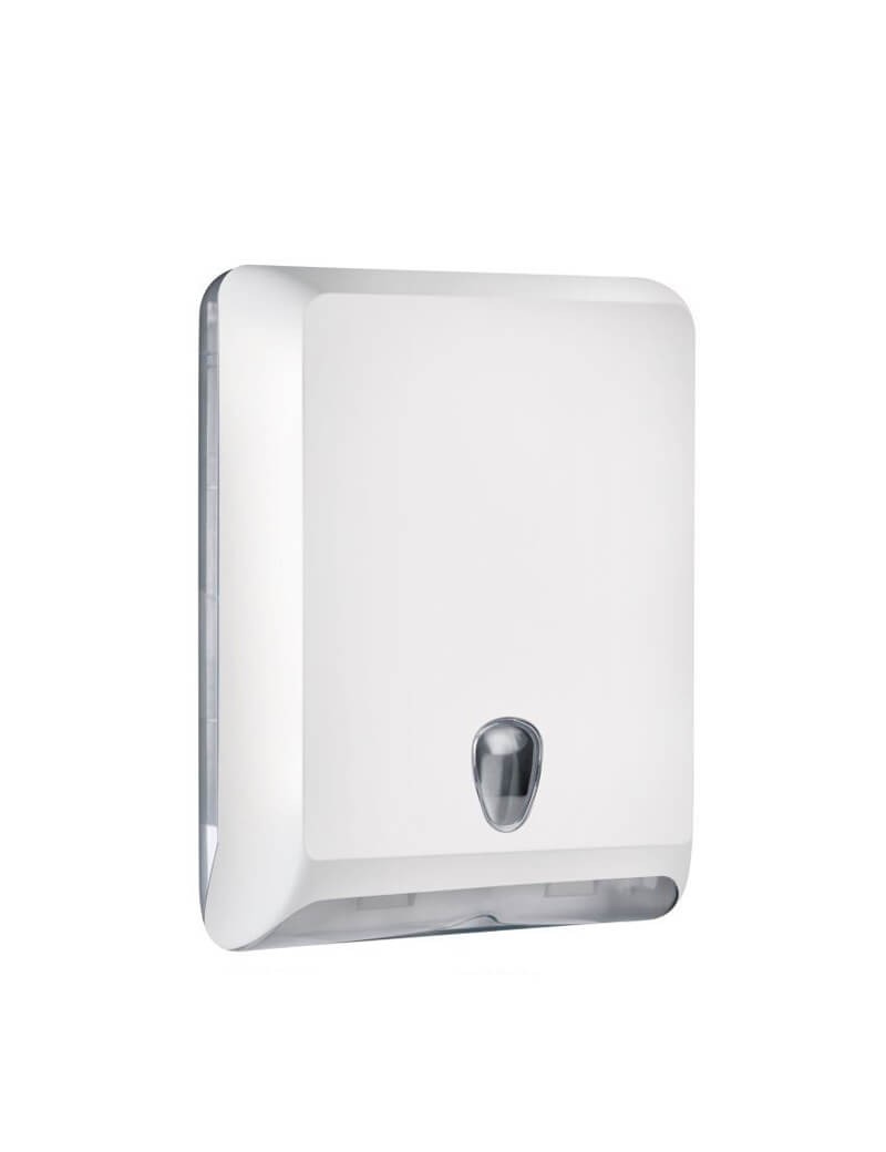 Dispenser in ABS bianco per carta asciugamani piegati a "C", "V" e "Z" con spessore max 120mm. - capacità circa 600 fogli "V"